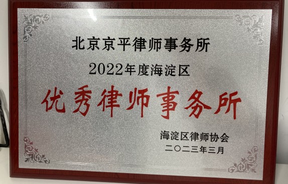 • 北京京平律師事務所榮獲2022年度海淀區“優秀律師事務所”稱號